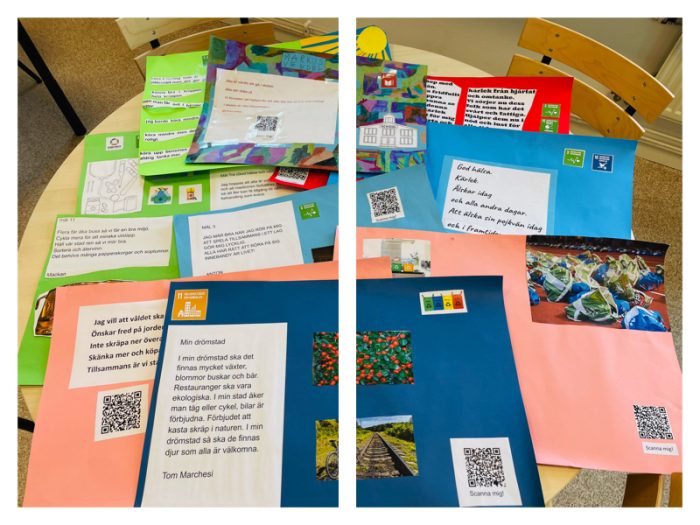 – Eleverna valde ett eller flera av målen och skrev dikter utifrån dem. Dikterna presenterades på posters tillsammans med bilder som eleverna själva fotograferade, ritade eller skrev ut från nätet. Nästa steg blev att digitalisera dikterna med hjälp av QR-koder. Dikterna lästes in och qr-koderna placerades på postern tillsammans med dikten och bilderna.